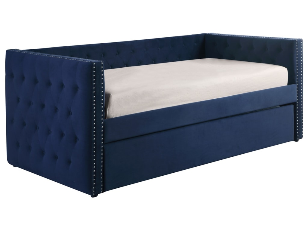 5335 Navy Upholstered Daybed With Button Tufting And Pull Out Trundle Bed By Crown Mark At Wayside Furniture