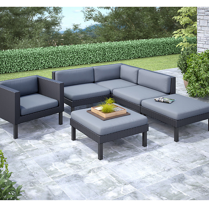 Oakland 6 Piece Patio Sectional Set With Chaise Lounge And Chair
