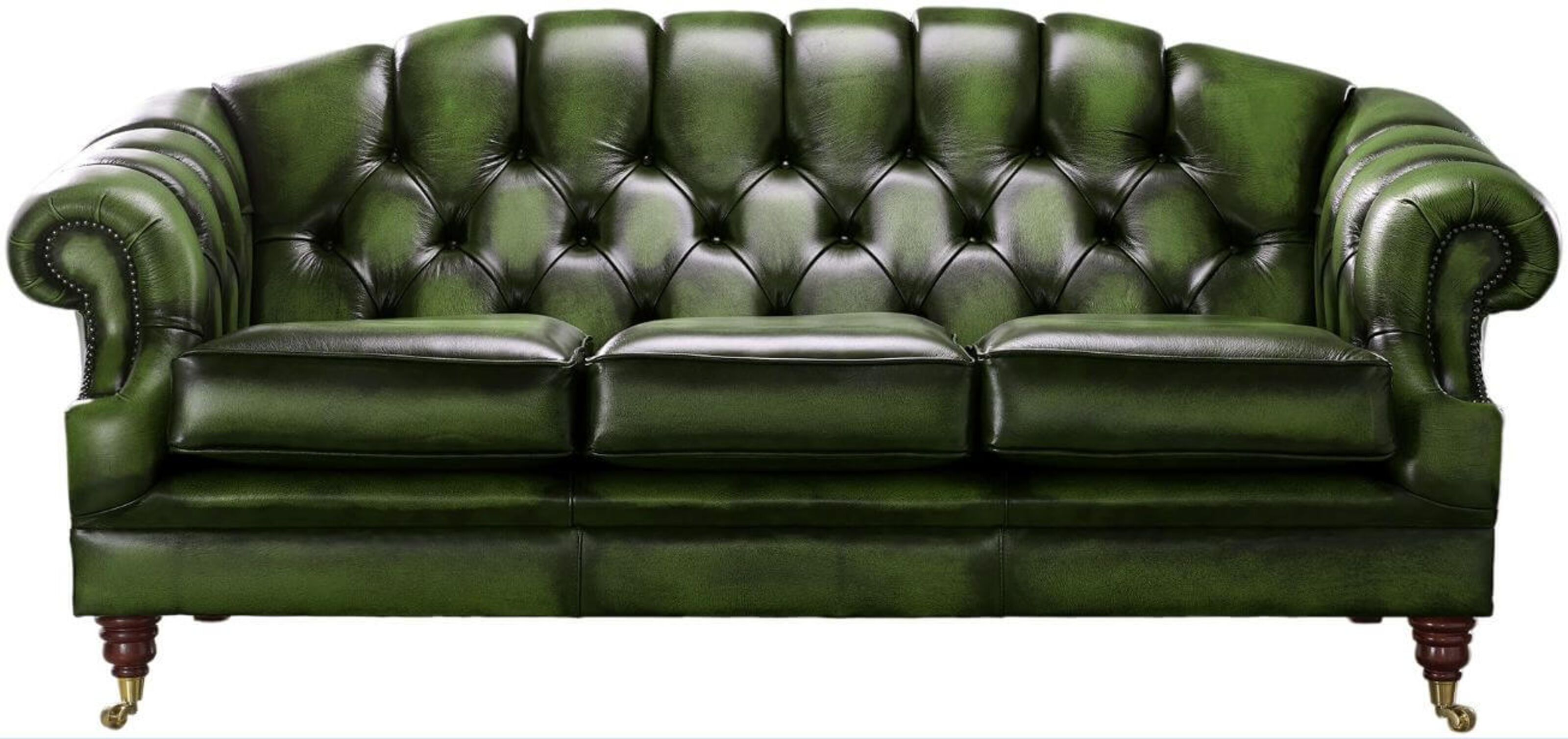Chesterfield Victoria 3 Seater Leather Sofa Settee Antique Green Leather