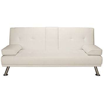 Riana Asia Imports Limited Modern 2 Seater Super Comfy Sofa Bed Sprung Foam Seat Back Faux Leather Upholstery White
