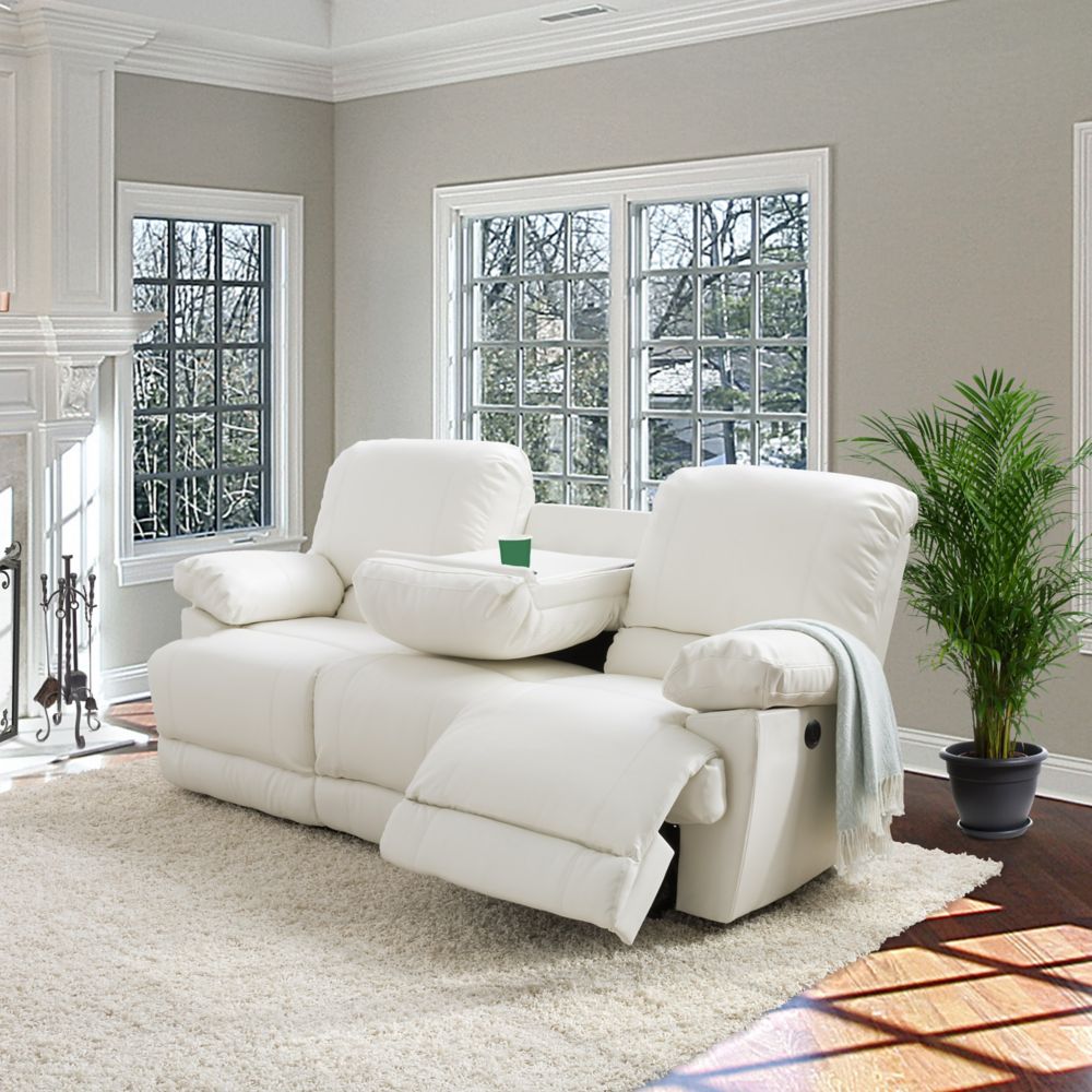 Overstock your online living room furniture store. This white leather reclining sofa has contemporary style and shade of creamy white thanks to its beautiful tufting and curved contours. In addition to flexibility power recliners and oversized power recliners can easily be used in place of sofas and loveseats.