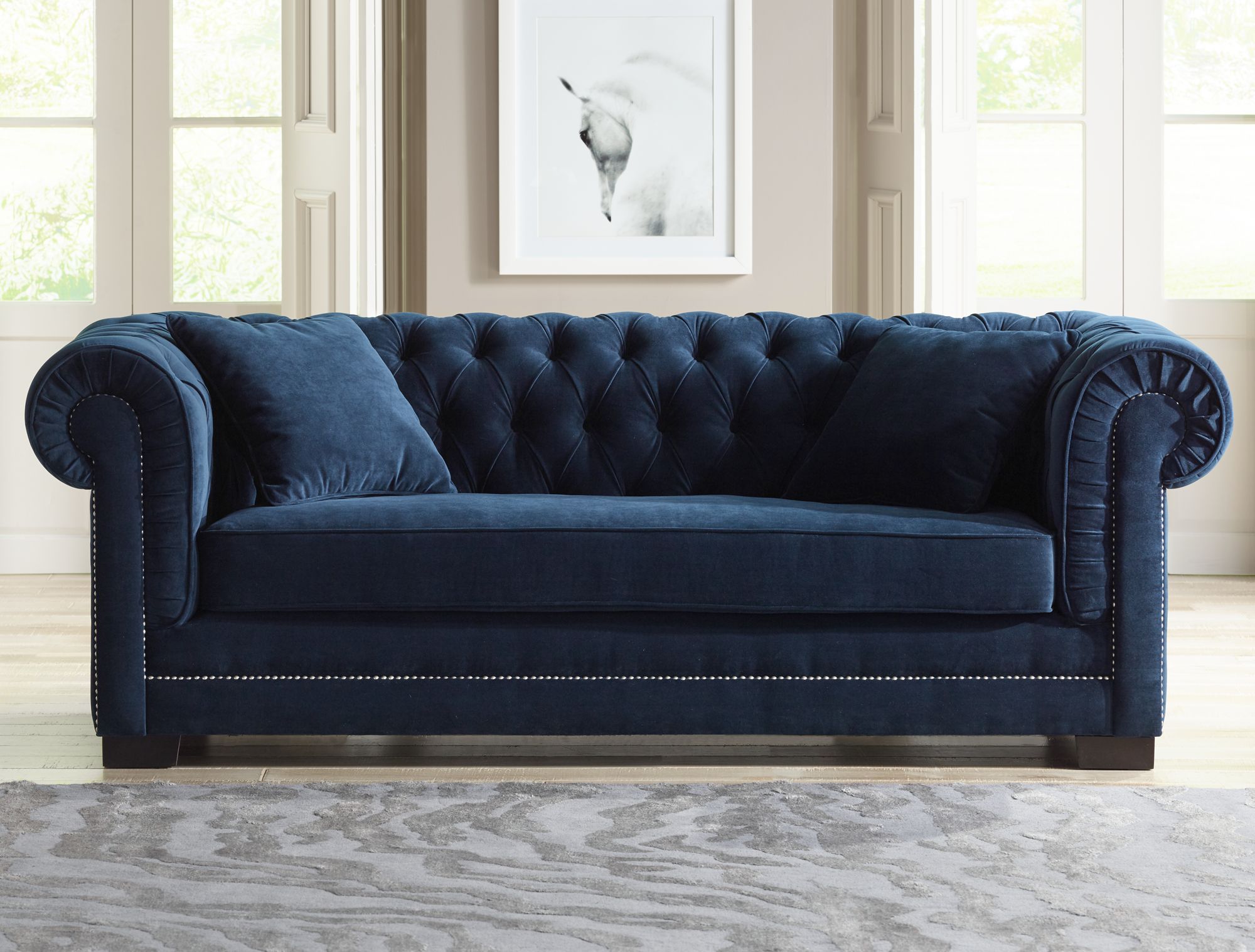 Thus this article Blue Leather Tufted Sofa