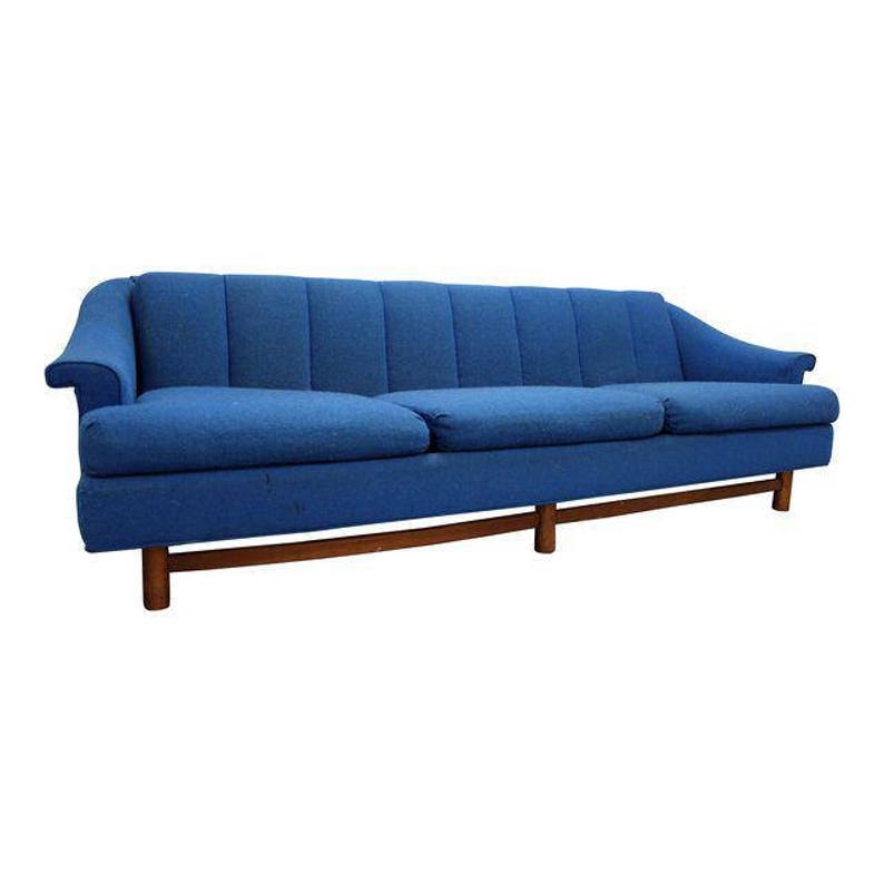 Mid Century Sofa Danish Modern 3 Cushion Blue