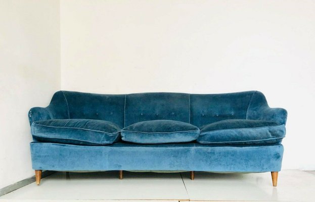 Vintage Blue 3 Seater Sofa By Gio Ponti 1960s