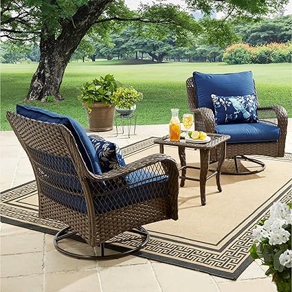 This set includes one deep seating sofa 2 swivel rocking chairs and one tempered glass top coffee table. Find quality patio conversation sets online or in store. You can enjoy the charm of camping without giving up the conveniences of modern day living.